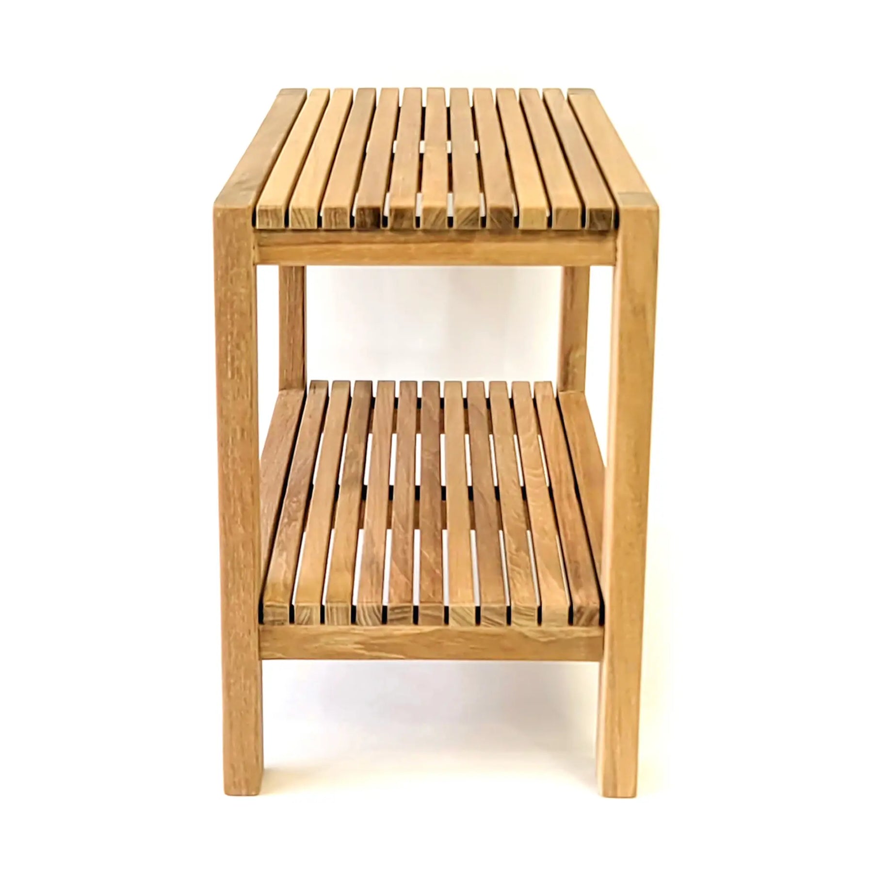 Small Bathroom, Big Impact: Coordinated teak pieces make small spaces feel intentional and luxurious, not cramped and cluttered.