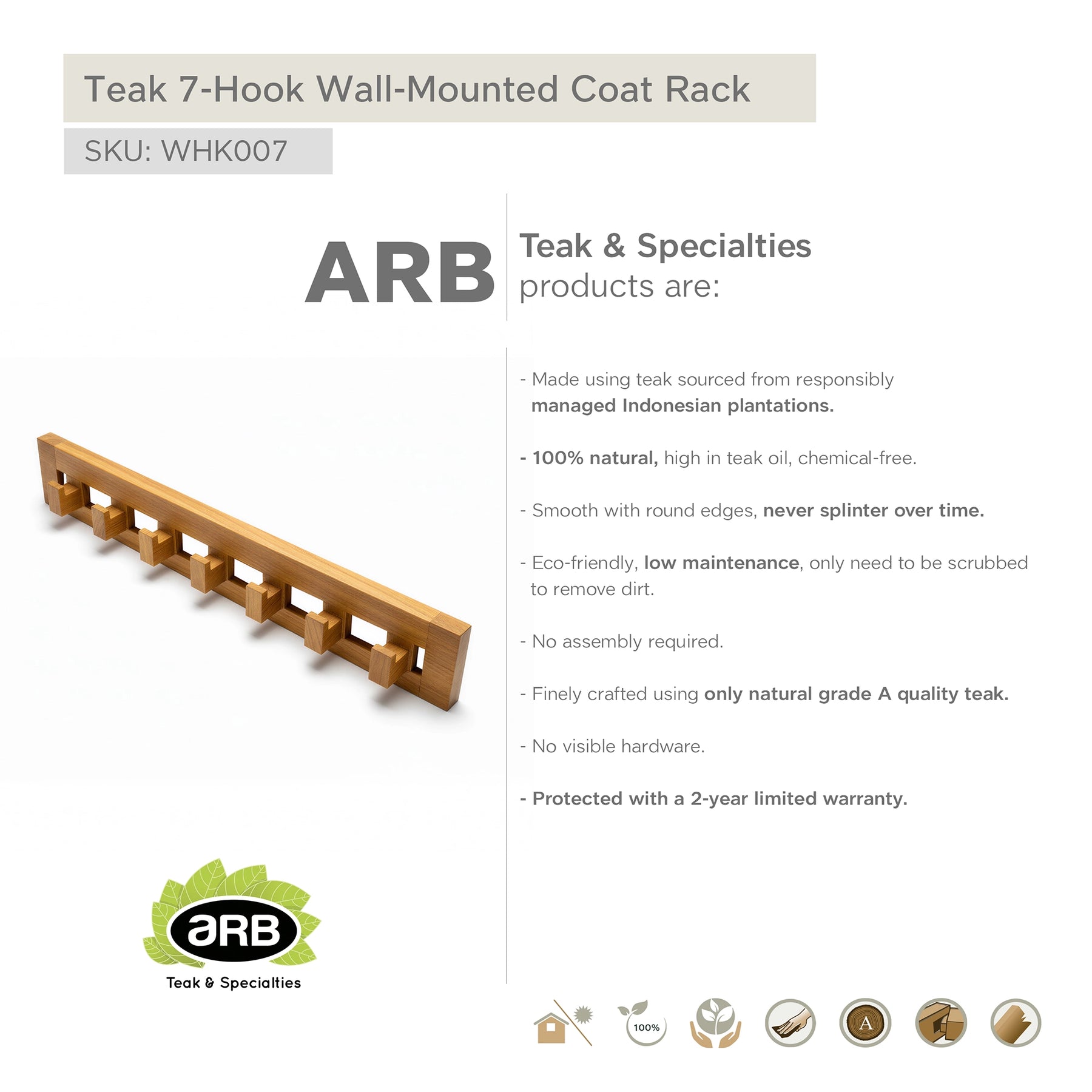 Engineered from 8 lbs (3.6 kg) of solid teak, this heavy-duty unit is built to withstand the rigors of daily use in a busy mudroom or chalet entryway. Teak’s legendary resistance to moisture ensures that dripping wet coats or snowy accessories won't damage the wood, preventing warping and rot even in unheated spaces or damp garages.